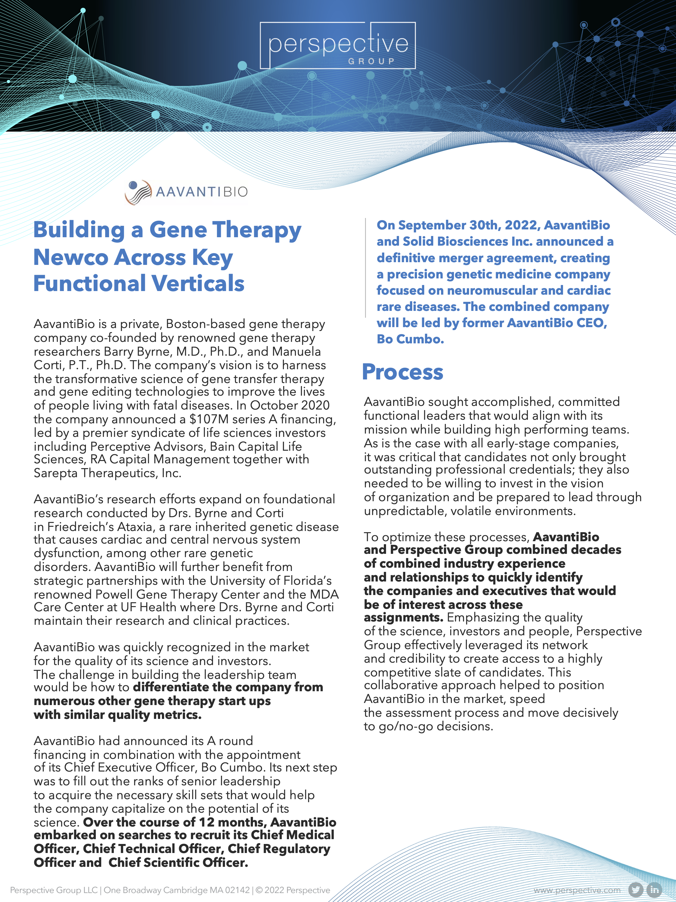 Sarah Foster 10/6/22 Sarah Foster 10/6/22 Building the Leadership Team of a Gene Therapy Newco Read More Sarah Foster 9/12/22 Sarah Foster 9/12/22 Perspective shares Board Audit Chair Insights and Successes Read More Sarah Foster 8/17/22 Sarah Foster 8/17/22 Perspective Group Recruits First-Half Highlights Read More Sarah Foster 4/25/22 Sarah Foster 4/25/22 Perspective Group Announcing the Formation of an Advisory Board Perspective Group announcing the formation of Advisory Board Read More Steve Fitzgibbons 1/6/22 Steve Fitzgibbons 1/6/22 Perspective Group announcing Kara Coluccio as Managing Partner succeeding Tom Carey Read More Newer Posts